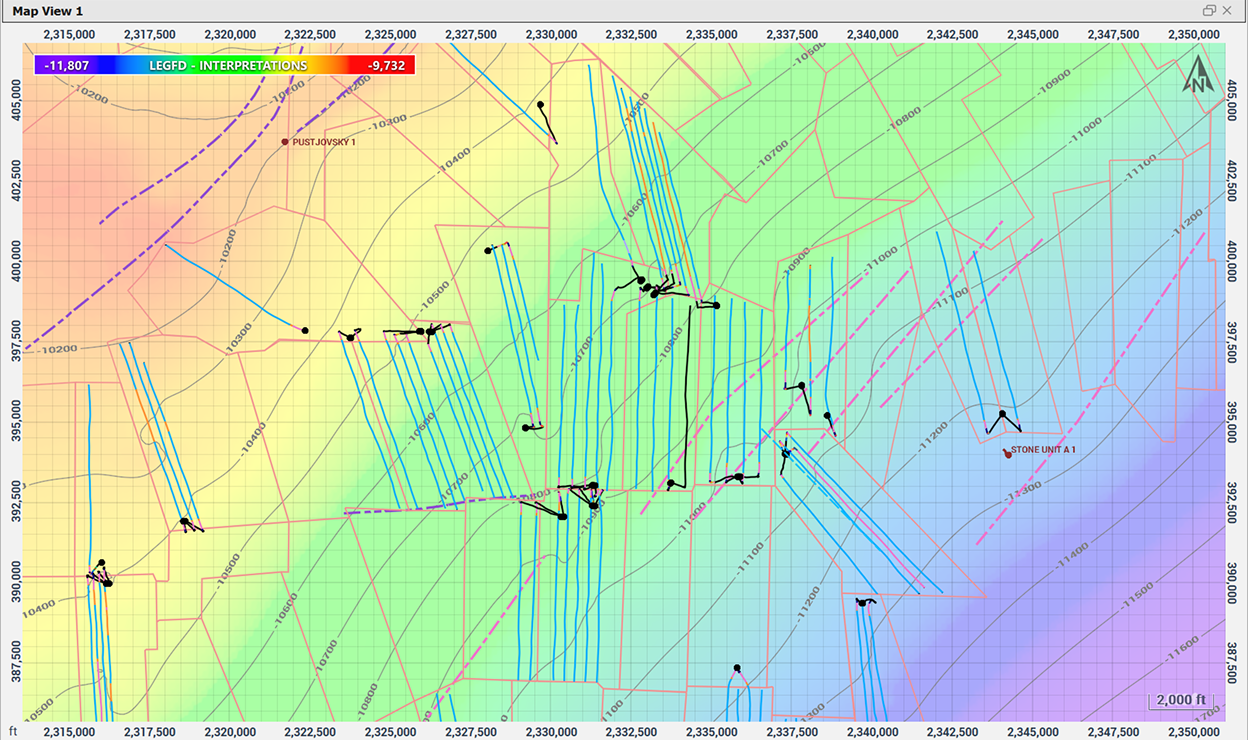Because mapping is linked to the same interpreted horizons used for geosteering and correlation, maps stay current instead of lagging behind operations.