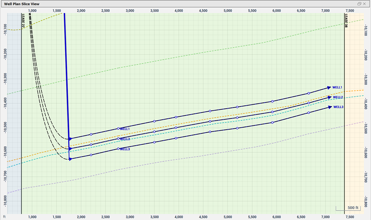 Plan even the most complex pads in map view using configurable sticks and multi-lateral tools that maintain lease-line compliance, proper spacing, and safe distances from offset wells.