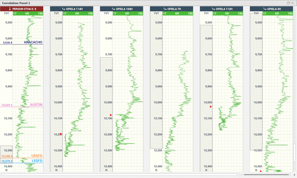 Picking tops is essential for identifying zone thicknesses, assessing geologic trends, and building horizon maps for a region. StarSteer’s Correlation Panel offers multiple precise ways to pick tops from vertical and horizontal wells.
